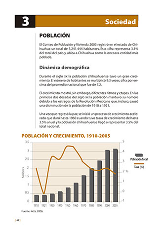 Libro de consulta y referencia que contiene cifras y datos actualizados sobre temas que caracterizan el acontecer chihuahuense, entre otros, historia, cultura, geografía, salud, educación, gobierno y economía.