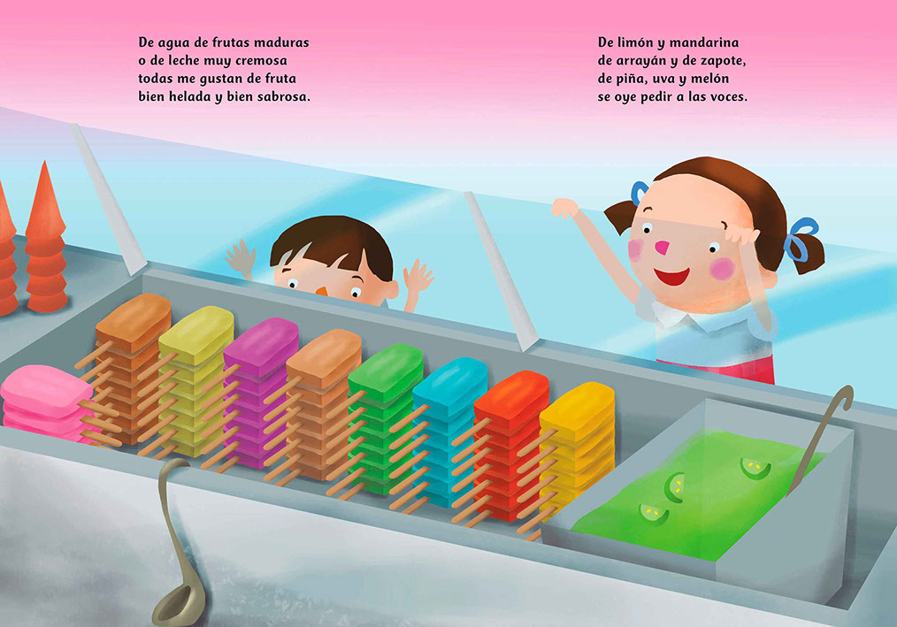 En este cuento en forma de rima y con coloridas ilustraciones festejamos a las ricas, deliciosas y refrescantes paletas que han alegrado la vida de niñas, niños y adultos por varias generaciones.