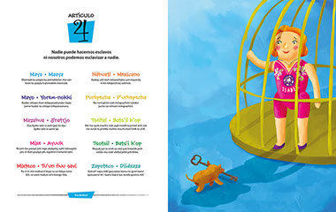 En este libro incluimos el texto de la Declaración en forma simplificada en español y diez lenguas indígenas mexicanas, para ayudar a la comprensión de los derechos humanos entre los niños y las niñas. Cada uno de los treinta artículos se presenta de manera clara y sencilla acompañado de una atractiva, colorida e ingeniosa ilustración.